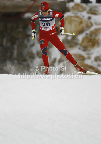 : Vibeke Skofterud of Norway skiing during qualifications for women sprint free style race of FIS cross country skiing World cup race in Rogla, Slovenia. Women sprint race of FIS cross country skiing World cup was held on Rogla, Slovenia, on Sunday, 18th of December 2011.