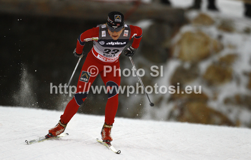: Maiken Caspersen Falla of Norway skiing during qualifications for women sprint free style race of FIS cross country skiing World cup race in Rogla, Slovenia. Women sprint race of FIS cross country skiing World cup was held on Rogla, Slovenia, on Sunday, 18th of December 2011.