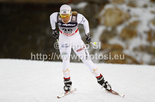 : Hanna Falk of Sweden skiing during qualifications for women sprint free style race of FIS cross country skiing World cup race in Rogla, Slovenia. Women sprint race of FIS cross country skiing World cup was held on Rogla, Slovenia, on Sunday, 18th of December 2011.